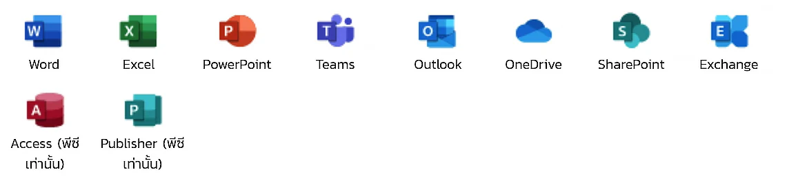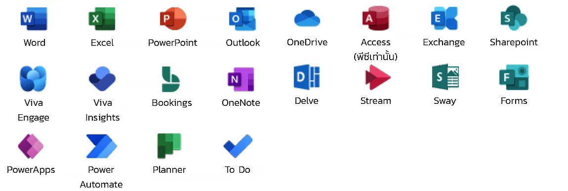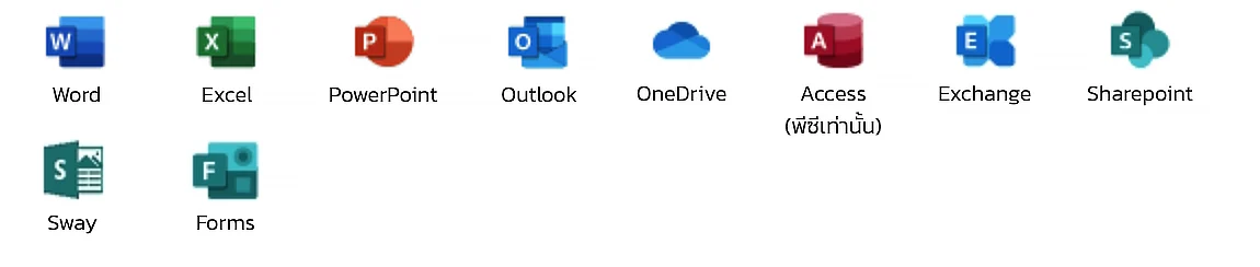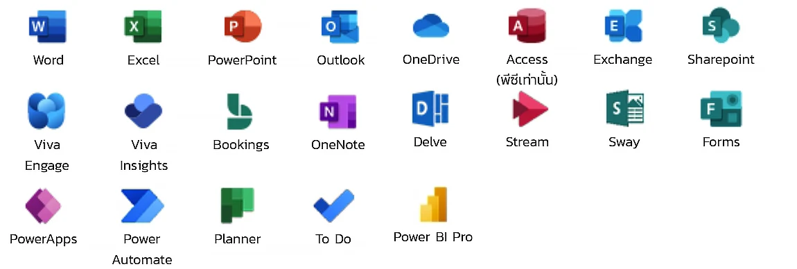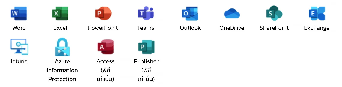 มีทุกอย่างใน Office 365 E3 (ไม่มี Teams) รวมถึง: