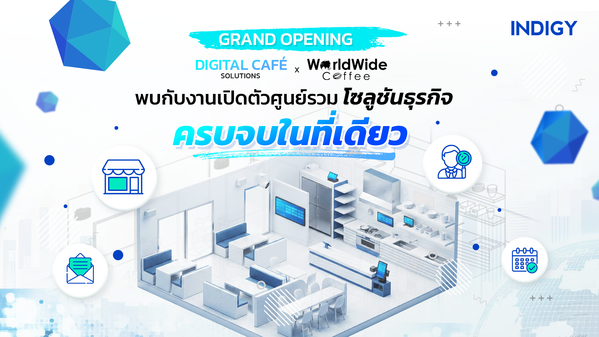 INDIGY ขอชวนคุณมาสัมผัสแนวคิด Digital Business Transformation ผ่านโมเดลธุรกิจยุคใหม่ ที่เชื่อมต่อเทคโนโลยีหน้าร้านเข้ากับระบบบริหารจัดการหลังบ้านอย่างครบวงจร กับ Digital Café Solutions